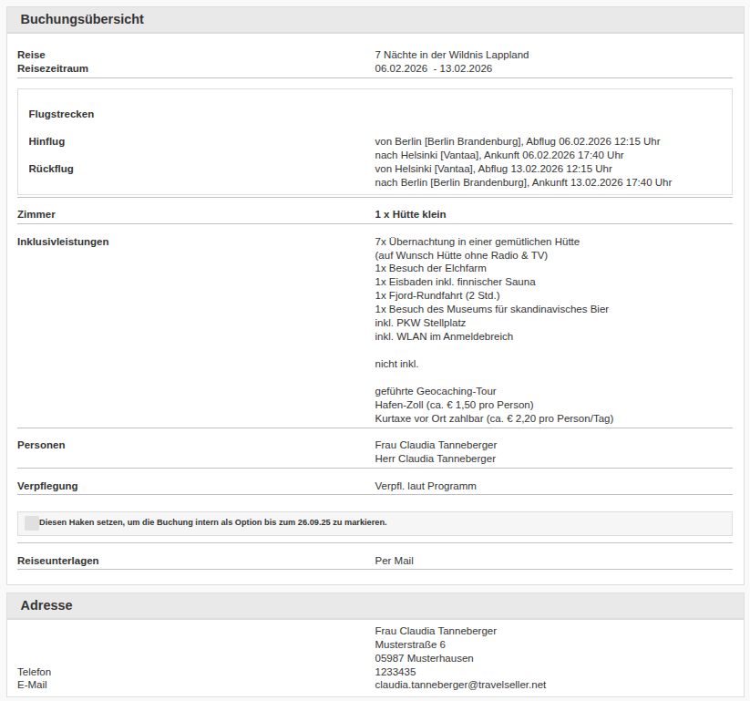 Außerdem gibt es bei Buchungen aus dem Travelseller heraus, die Möglichkeit die Buchung als interen Option zu markieren.