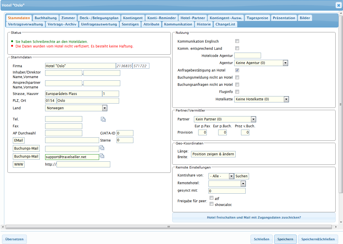 Hier legen sie das Hotel an, welches dann mit der Reise verknüpft wird.