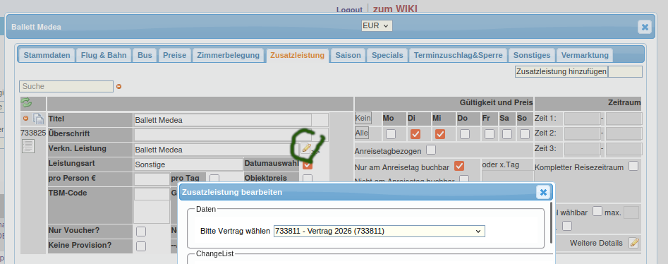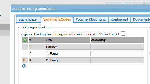 In dem Modul Zusatzleistung legen sie die Stammdaten, Varianten, Voucher-Texte, Kontingente und Einkaufsdaten an.