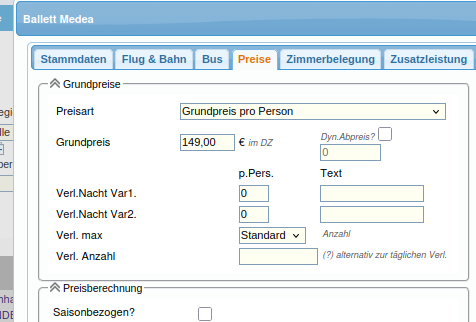 Reise mit Quartier - Karte für ein Ballett mit verschiedenen Sitzplatz-Varianten